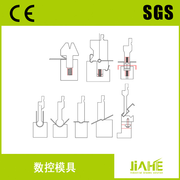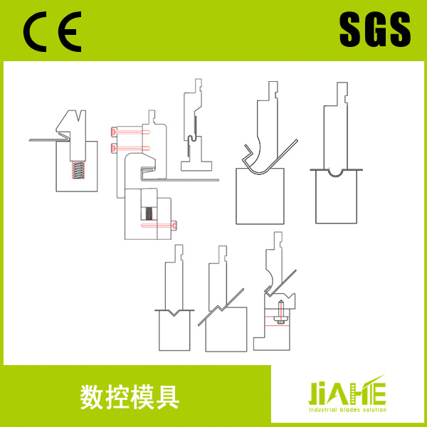 嘉禾提供全套標準折彎刀具,針對于用戶的特殊加工需求,嘉禾設計開發(fā)了很多非標準形狀的模具。滿足您的加工需求的更多信息。所提供的類型有單V模、多V模及可調節(jié)型V開口下模。保證了在整個全長上的精確折彎角度。此類型模具的開口兩側由漸進的半徑加工而成,允許被折彎的材料更均勻地進入下模。此獨特的設計降低了材料與下模間的摩擦。特殊折彎模具承載極大的折彎壓力而設計,盡管長期在強大的加工壓力下工作,它亦可表現出穩(wěn)定的加工性能及長久的生命力。